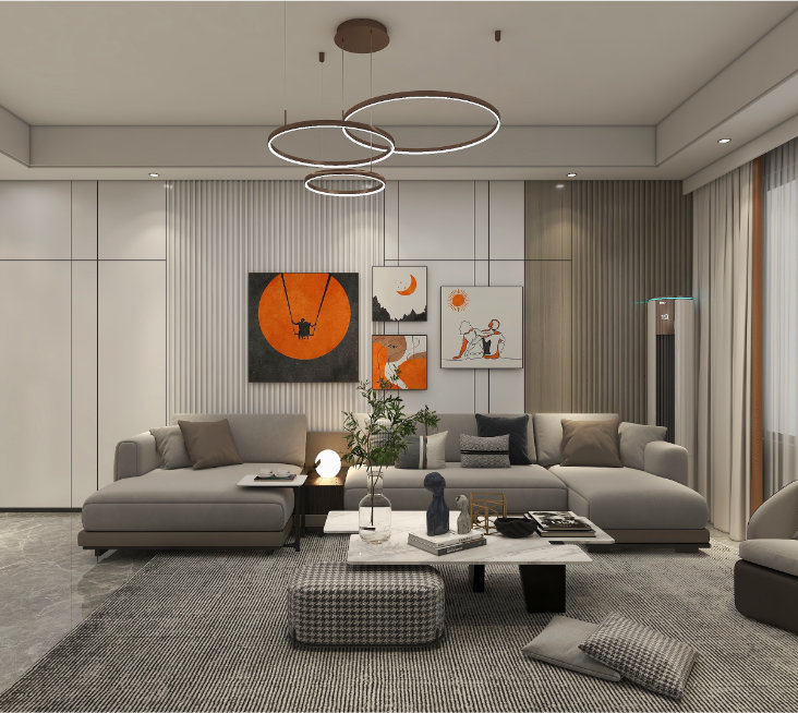 客廳白灰色系的客廳,不同亮度的灰色,時(shí)尚又獨(dú)特,一組端莊的布藝沙發(fā),干練簡(jiǎn)約的茶幾,造就了客廳里的品質(zhì)生活。整墻電視柜提供豐富儲(chǔ)蓄空間,讓家更加整潔干凈。 餐廳...